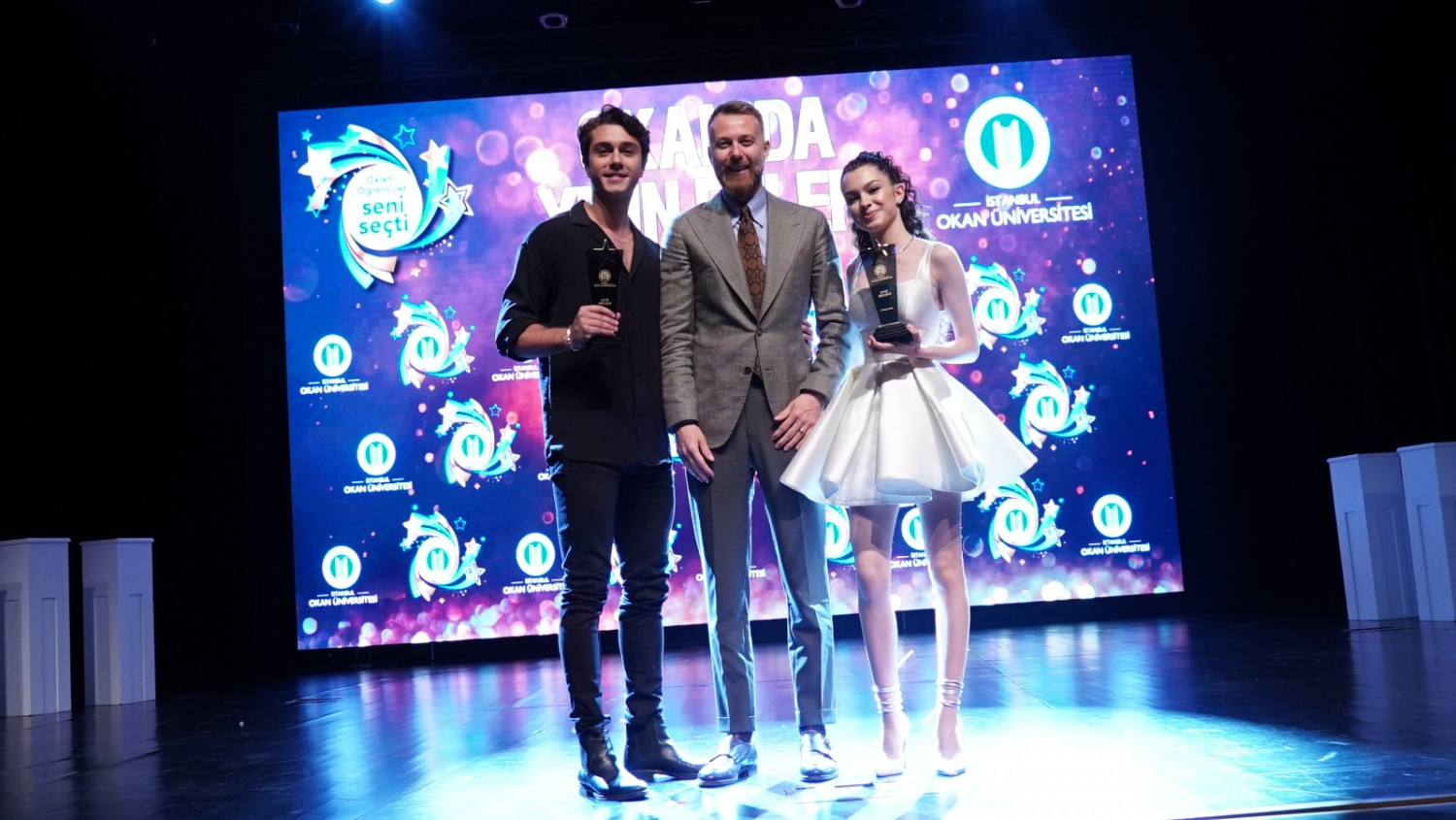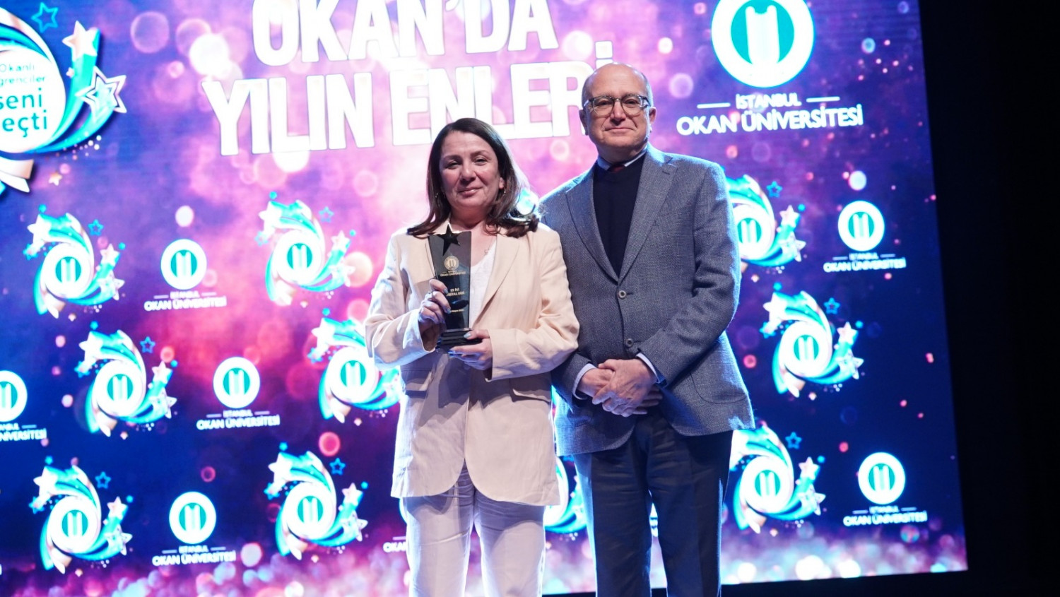 Üniversitemizin düzenlediği Okan’da Yılın Enleri Ödülleri’nin töreni 10 Mayıs 2022 Salı günü gerçekleştirildi. 13 kategori ve 3 özel ödülün sahiplerini bulduğu törende Demet Akbağ, Onur Tuna, Cem Belevi, Tuğçe Kandemir, İrem Helvacıoğlu, Danilo Zanna ve sinema, dizi, tiyatro dünyasının yıldız isimleri ödül aldı.